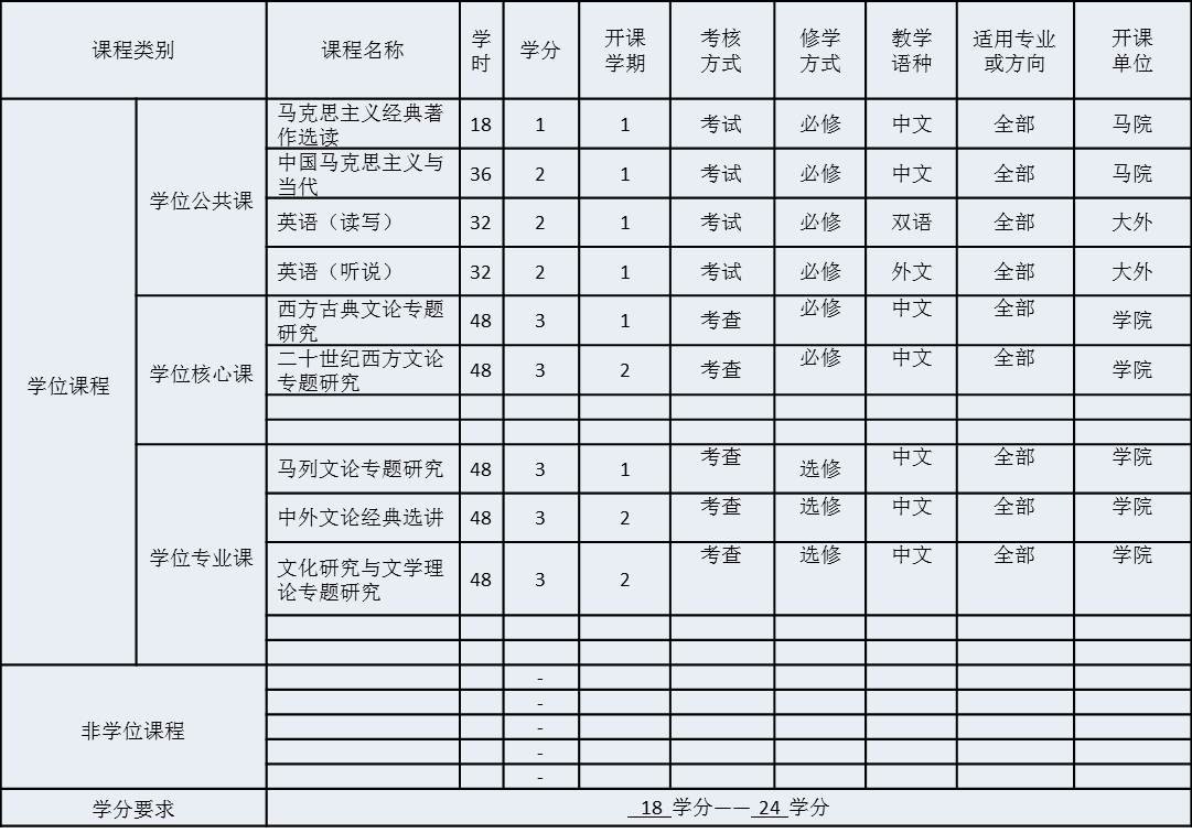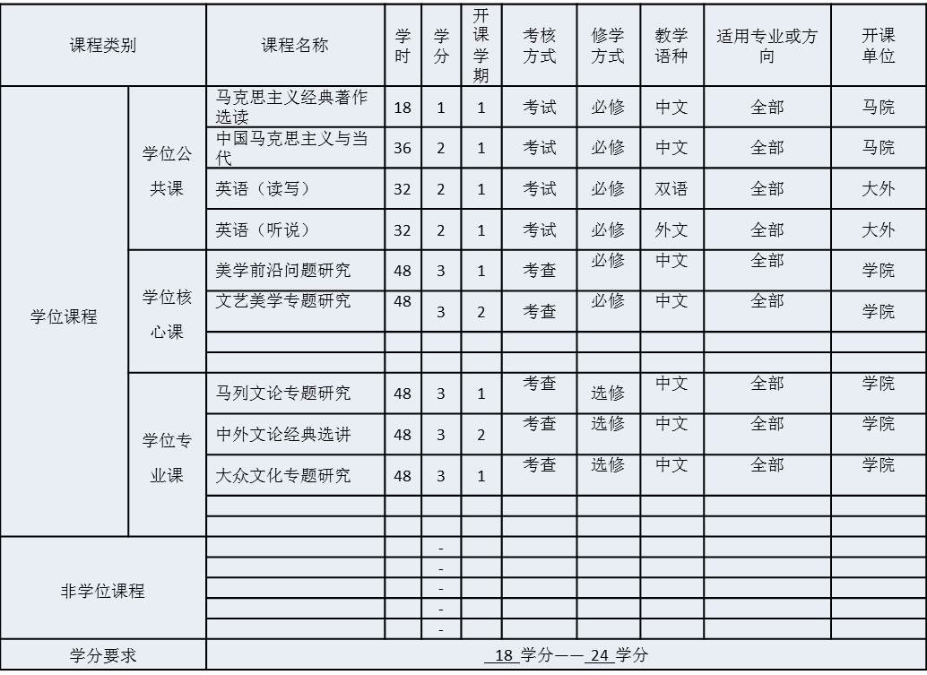 附表1:中国语言文学文艺学专业学术学位博士研究生课程设置及学分要求