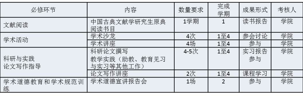 中国古典文献学学术学位硕士研究生必修环节设置要求