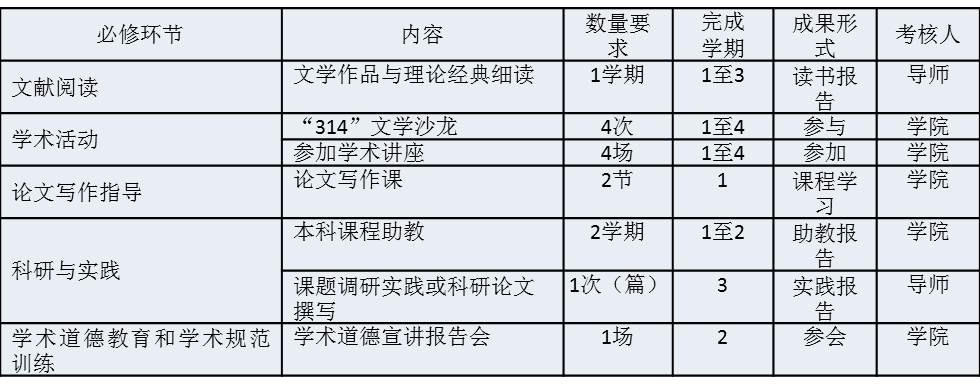 必修环节是研究生培养过程中除完成课程学习和学位(毕业)论文外还必须完成的其他科学研究、培养任务。具体包括文献阅读、学术活动、科研与实践、论文写作指导、学术道德教育和学术规范训练五项内容。分别由网赌 和导师完成考核。