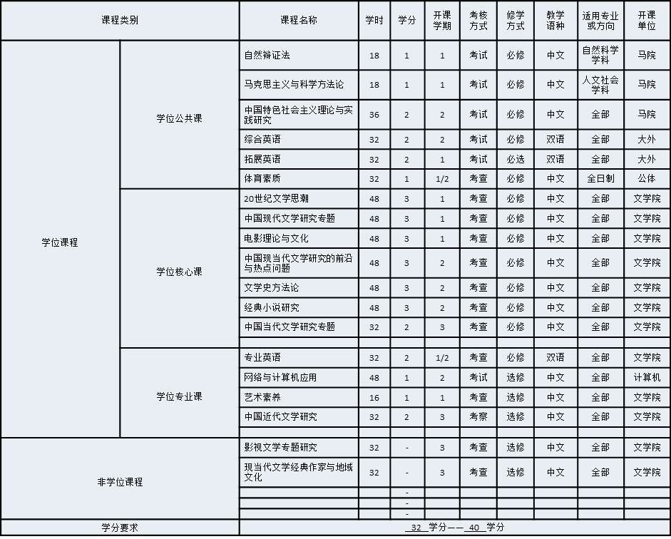 3.中国现当代文学硕士生课程学习安排3个学期内完成。