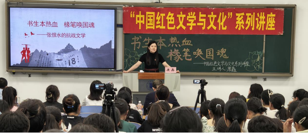 5月17日晚,网赌 “中国红色文学与文化”系列讲座第九讲开讲,康鑫副教授作了题为“书生本热血,椽笔唤国魂——张恨水的抗战文学”的讲座,网赌 党委副书记张艳主持,中国现当代文学党支部教师代表、辅导员老师、2022级本科生200余人参加了讲座。