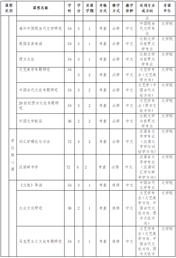 学位专业课,从大众文化研究、马克思主义文论专题研究、先秦文化与美学专题研究、文论前沿话题研究4门选修课中任选1门。