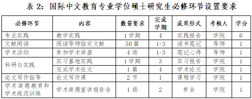 3.专业学位硕士研究生培养采取课程学习和文献研究相结合的方式。通过课程学习和必修环节,系统掌握国际中文教育领域的理论知识,培养问题意识,提高分析问题和解决问题的能力。