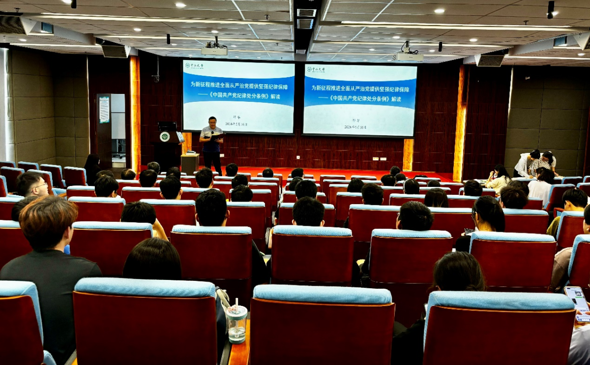 为深入学习贯彻习近平总书记关于开展党纪学习教育的重要讲话和重要指示批示精神,扎实开展党纪学习教育,营造学纪、知纪、明纪、守纪的浓厚氛围,5月16日下午,网赌 党委理论学习中心组以扩大会议形式召开党纪学习教育专题学习会。会议邀请马克思主义学院邓华副教授作《为新征程全面从严治党提供坚强纪律保障——<中国共产党纪律处分条例>解读》辅导报告,学院党委理论学习中心组成员、各党支部书记、学院师生党员近百人参加。会议由学院党委书记刘飞同志主持。