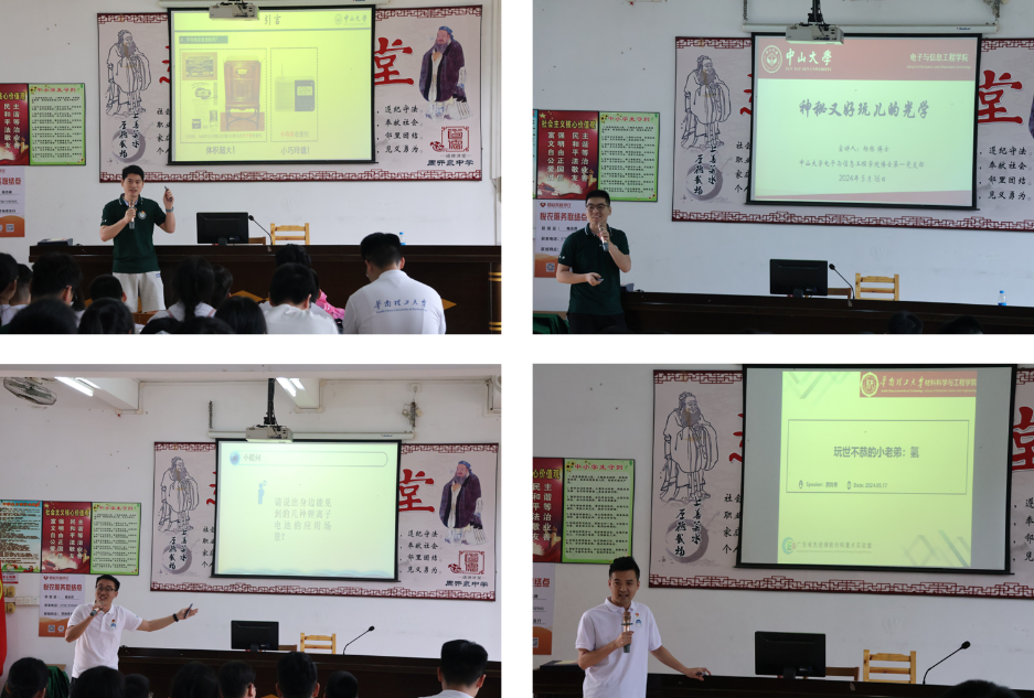 为贯彻落实党的二十大精神,积极响应广东省“百千万工程”号召,促进科技知识传播与普及,培育青少年的科学志趣,2024年5月17日下午,网赌 网赌 博士第一党支部与华南理工大学材料科学与工程学院大学城金属博士党支部联合开展“博士科普行”主题党日活动。两校博士生党员在肇庆四会市周开泉中学开展“科普报告”等系列活动,吸引了众多中学师生参加,助力提升青少年的科学素养,引导树立“科技报国”远大理想。