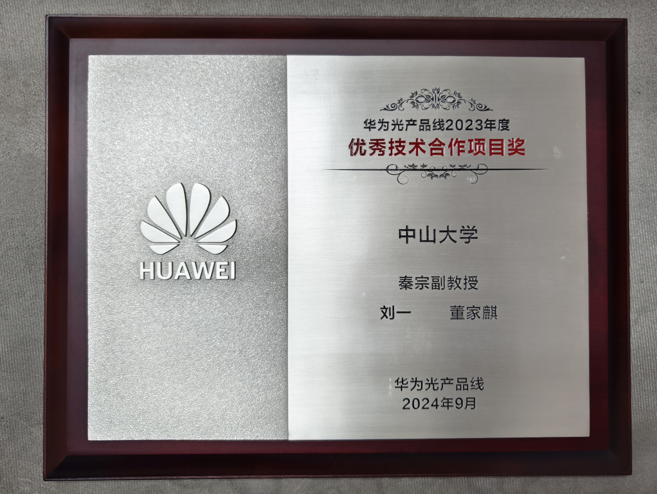 科研动态│网赌 秦宗副教授荣获华为光产品线“优秀技术合作项目奖”