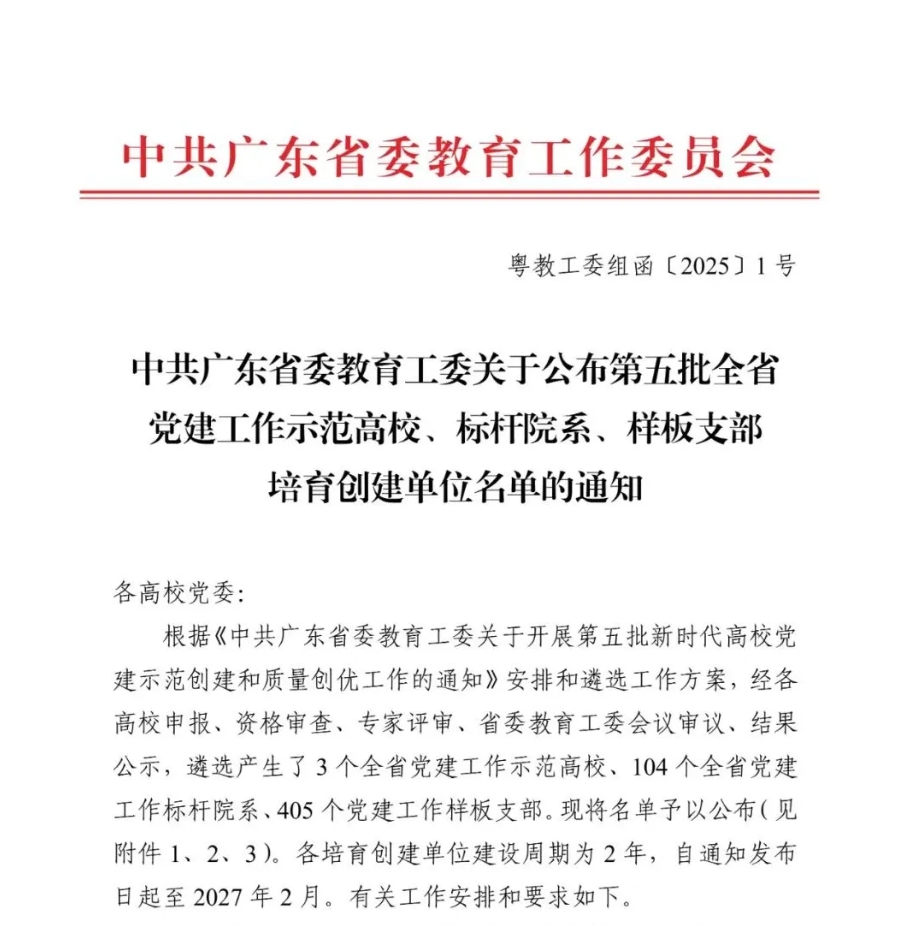 根据《中共广东省委教育工委关于开展第五批新时代高校党建示范创建和质量创优工作的通知》要求,经各高校申报、资格审查、专家评审、省委教育工委会议审议,网赌 成功入选广东省第五批全省“党建工作标杆院系”创建名单。