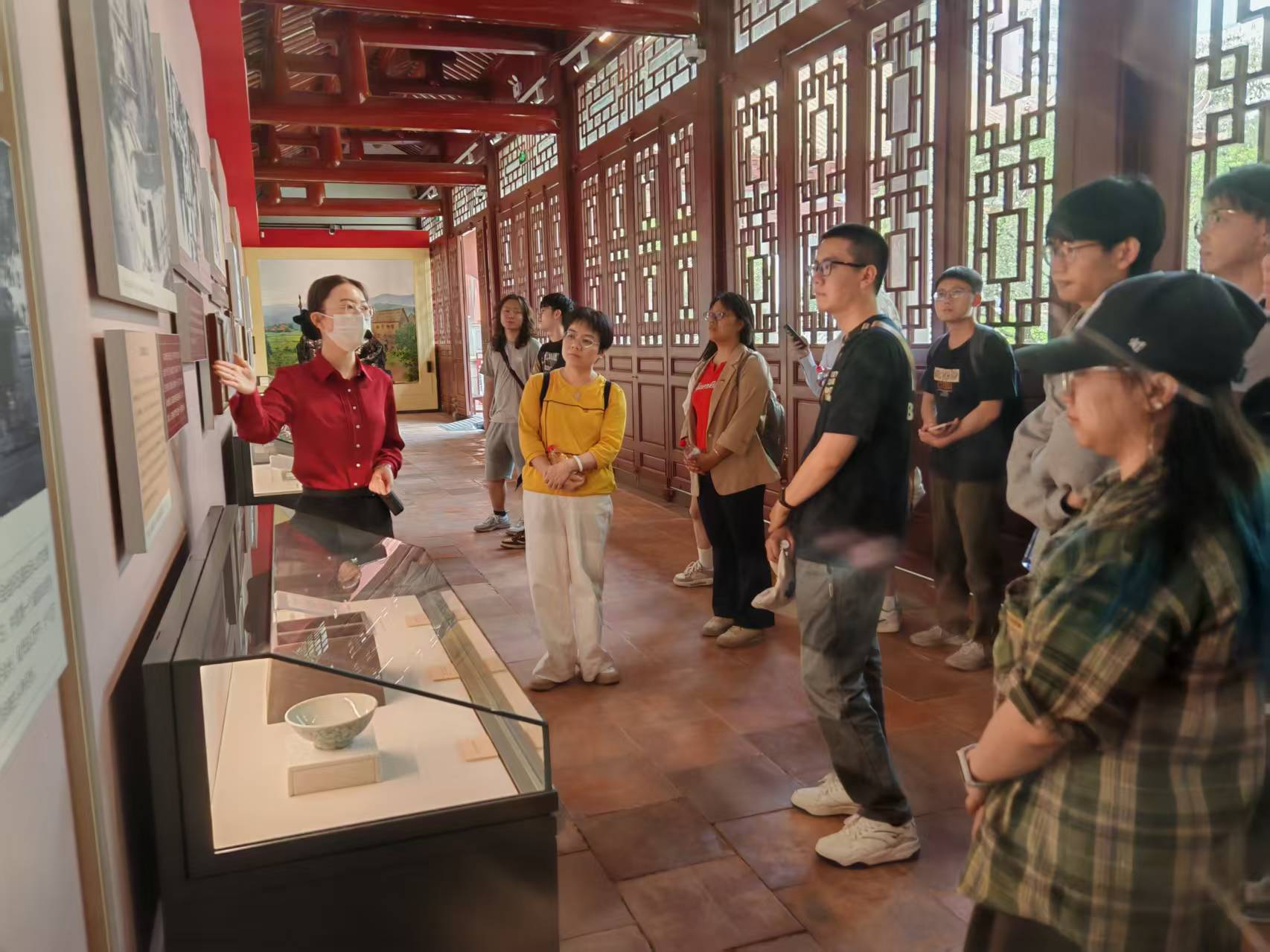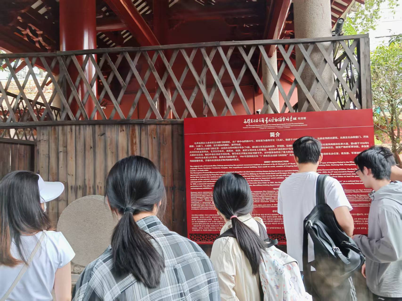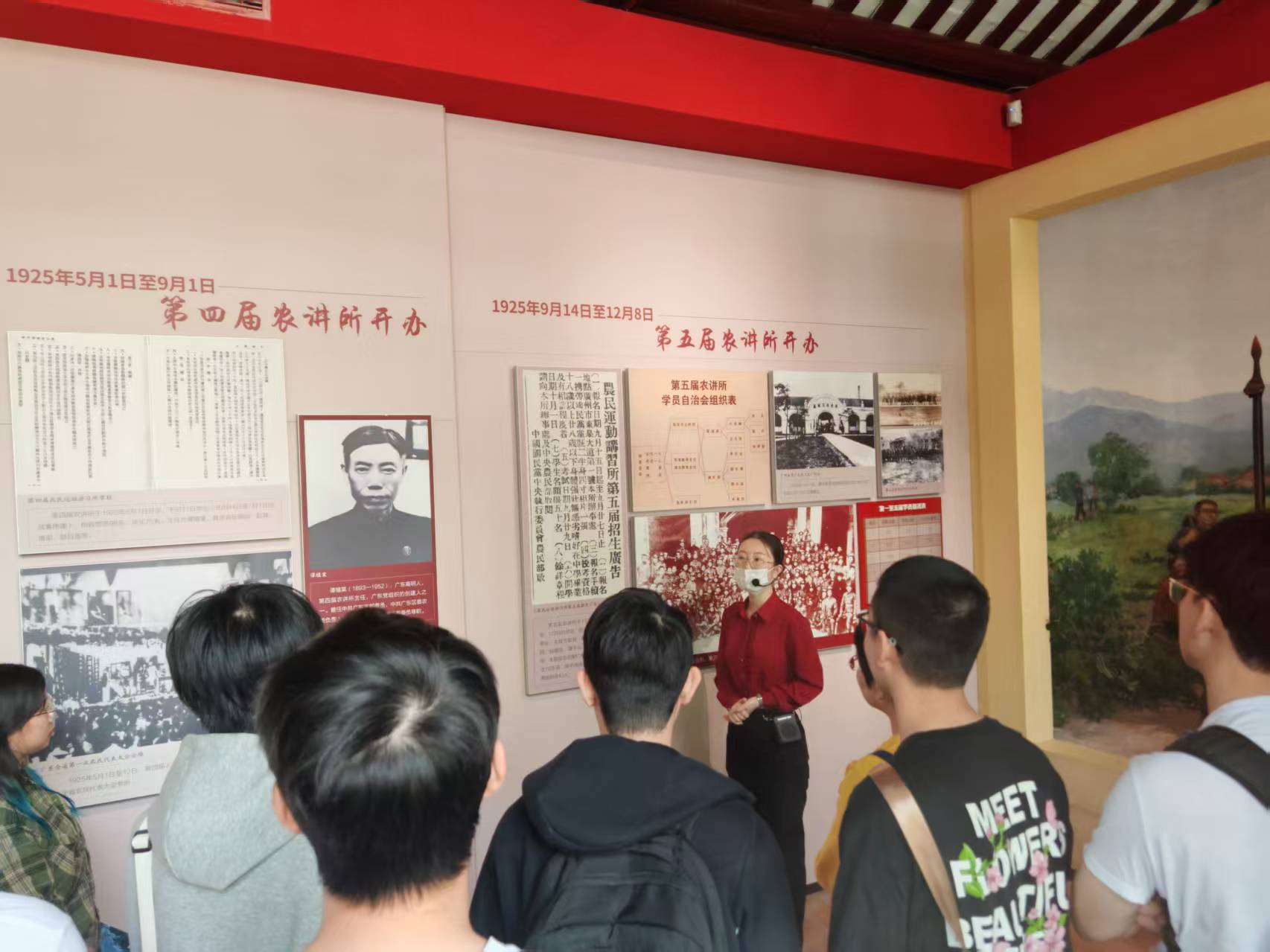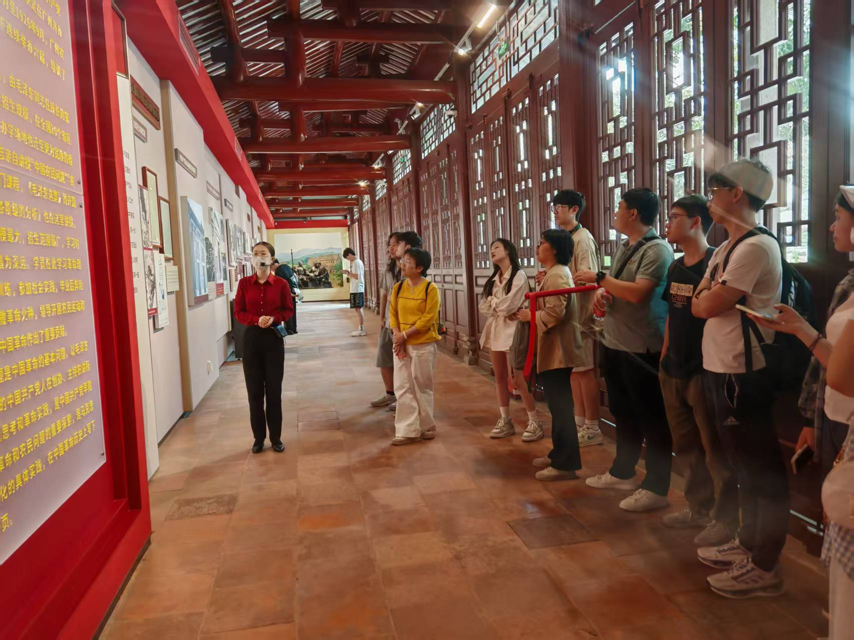 师生一行来到农讲所纪念馆后,在讲解员的引领下,共同参观了农讲所旧址,认真聆听农讲所的创建背景及其在革命历史上的重要地位。通过一件件珍贵史料和一行行鲜活数据,大家追溯了毛泽东同志担任第六期农讲所所长,在番禺学宫举办农民运动讲习所的历史和领导农民运动的光辉历程,深刻体会中国共产党早期革命先辈的初心与使命。