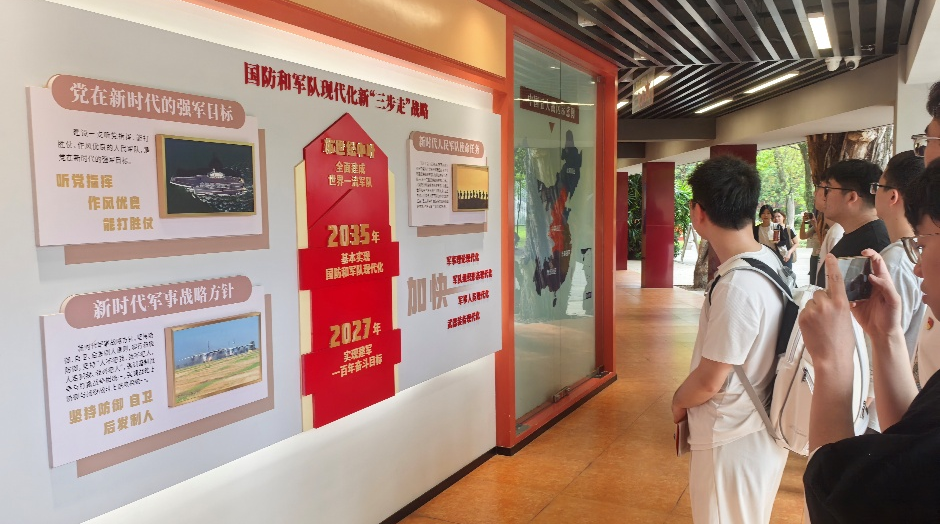 步入国防教育长廊,我国飞速发展的国防科技令人振奋。从国产航母的下水到新型战机的列装,从东风-21D反舰弹道导弹到东风-26型导弹,这些先进的装备和前沿的科技成果无不让站在科研前线的参观人员感到自豪。这些大国重器凝聚着无数科研人员的心血,不仅是国家实力的象征,更是国家安全的有力保障。新时代,习主席站在统筹“两个大局”的战略高度,鲜明提出党在新时代的强军目标,确立新时代军事战略方针,引领人民军队在中国特色强军之路上阔步前行,为实现中华民族伟大复兴提供了坚强有力的战略支撑。